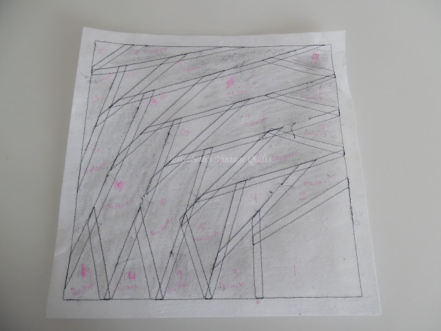 Dan gestikt op scheurvlies om sjablonen te knippen voor de lapjes.